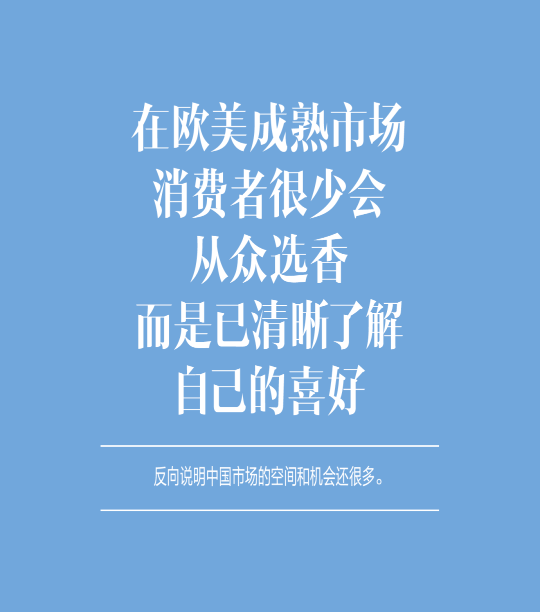 对此,科蒂全球旅游零售业务执行副总裁Caroline Andreotti曾在接受笔者采访时深有感触。她指出,在香水消费上,中国消费者购买高品质高价产品的意愿很强,而且对于香水香调和品牌背后的故事也充满很强的探索欲望。