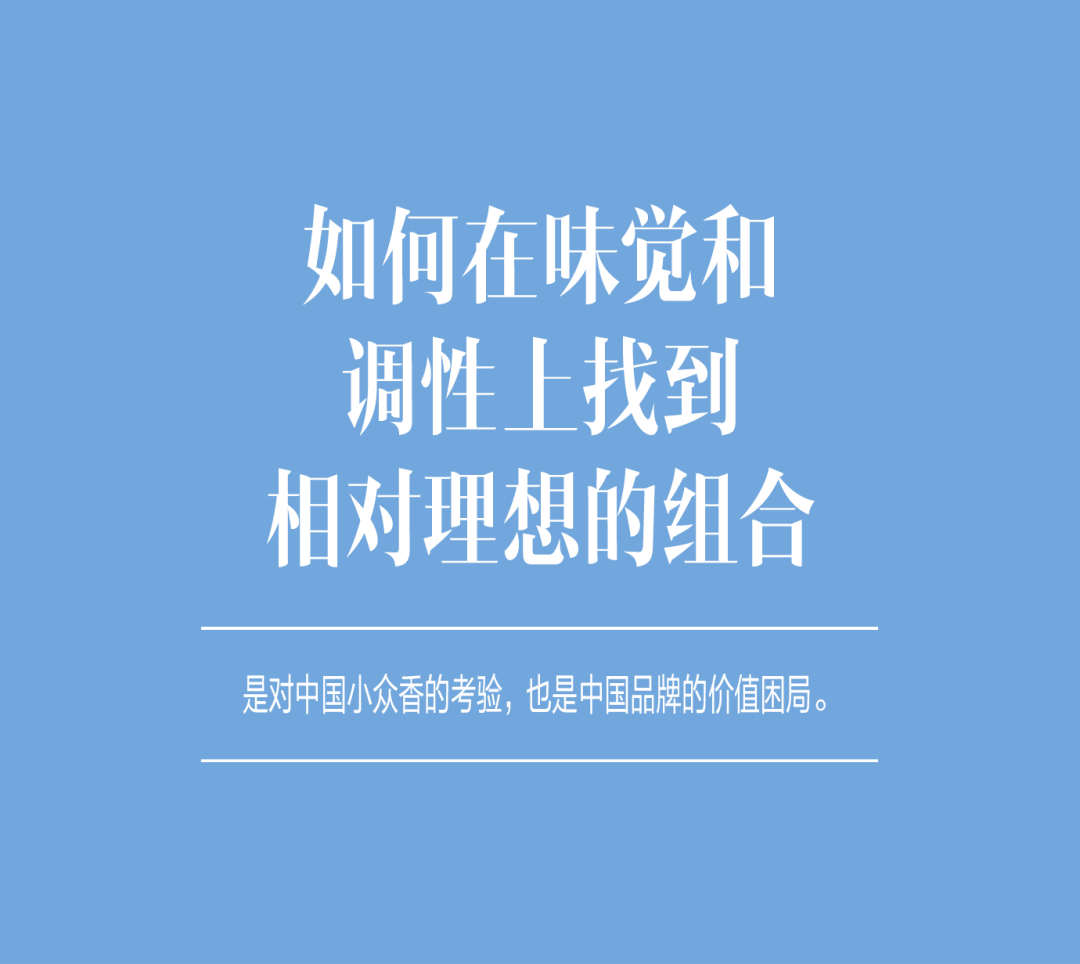 如何在味觉和调性上找到相对理想的组合,也是对中国小众香的考验。也是中国品牌的价值困局。