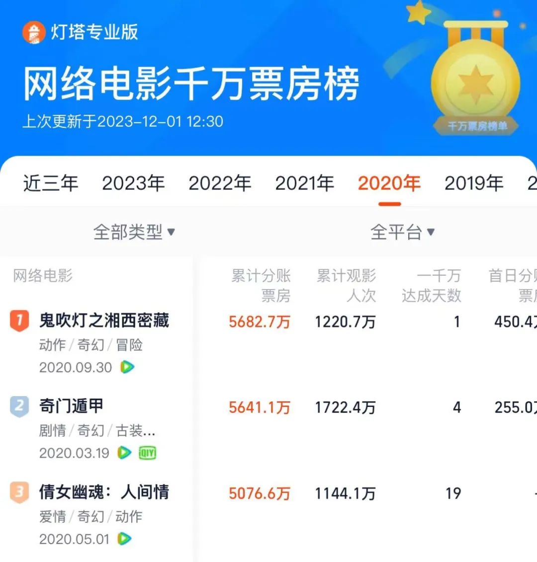 殊不知,2020年却成为了网络电影行业最后一个高光点。