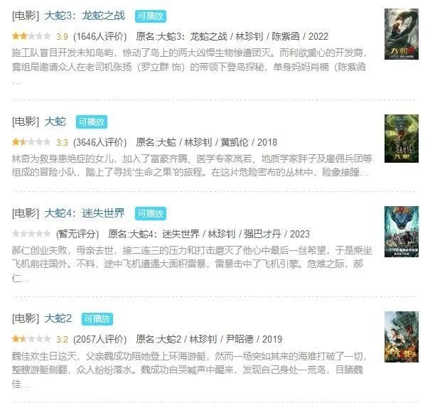 一个最直观的体现是,《大蛇4》上线已经半个多月时间,评分人数甚至少到无法在豆瓣开分。要知道,这已经是网络电影行业为数不多的老牌头部IP续作,影响力本不该如此。