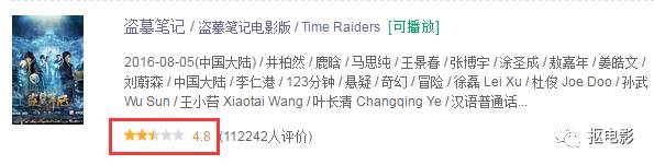 《盗墓笔记》,票房10亿,豆瓣评分4.8;