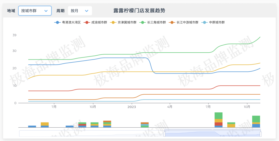 lululemon2022年5月-2023年11月门店发展趋势 图源:极海