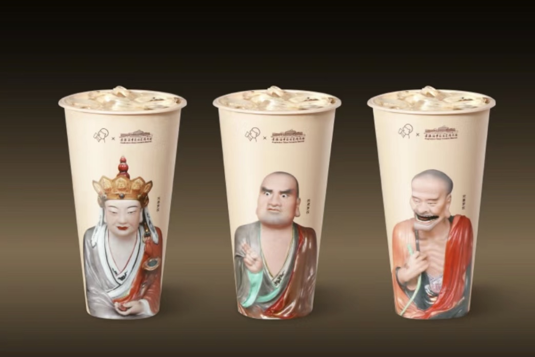 此次争议中的联名事件,是喜茶和景德镇中国陶瓷博物馆在11月28日发布的联名款茶拿铁及包装、冰箱贴等周边产品,一共涉及这家博物馆中的3个形象,分别是“沉思罗汉”“伏虎罗汉”和“欢喜罗汉”。在它正式发布之前,社交网络上已经有了较高的讨论度,发布后#喜茶 我佛持杯#的话题则曾登上微博热搜第一,其产品也在某些地区一度断货。