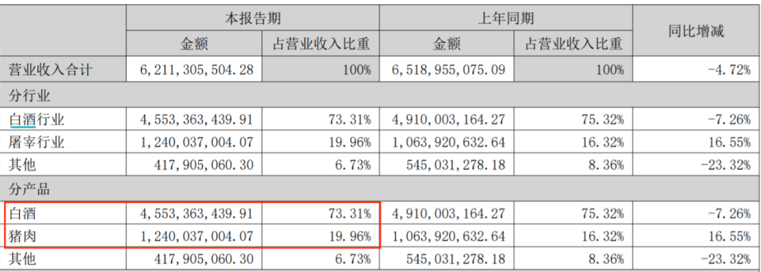 今年上半年,顺鑫农业的猪肉营收占比为19.96%,白酒业务占比为73.31%。
