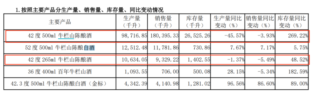到了今年上半年,该产品销售量仍然下滑3.93%,库存量增长269.22%。同时提价的42度265ml也呈同样的趋势。