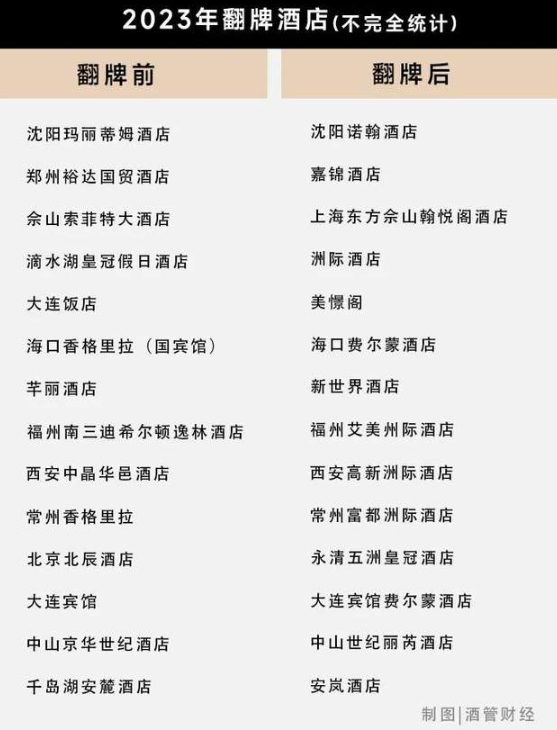 《酒管财经》注意到,今年完成换牌的多为老牌酒店。