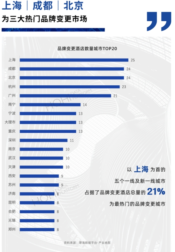 此外,厚海数据发布的《中国酒店市场品牌变更洞察报告》中显示,酒店品牌变动的频度与地区经济产值呈现一定的正相关。