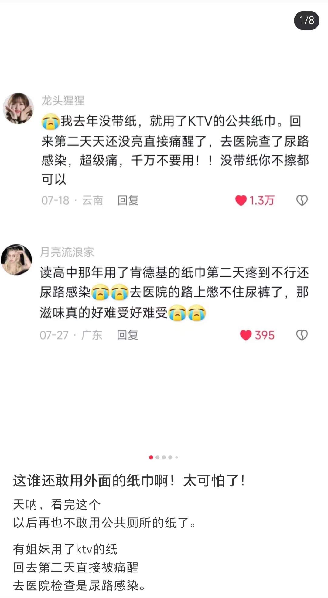 但这还是引起了不少网友的恐慌,表示不敢使用公共厕所的卫生纸。
