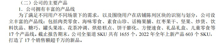 对此,自媒体“财经故事荟”推测,“良品铺子线上与线下的同类产品在价格、口味、规格方面可能本来就存在差异,推测两渠道的货盘本就不同。并举例“在小红书上,多位网友表示在门店和线上购买了同一产品,味道却不同,比如甜薄辣豆干线下是甜辣,但线上有点咸味。”同时,良品铺子此次降价300个产品,只占总品类的18.2%左右。其财报显示,截止2022年底,公司全渠道 SKU 共有 1655 个,2022年全年上新产品SKU就有603个。而本次只针对300款产品进行降价,包括夏威夷果、松子、开心果、腰果等坚果,猪肉脯、鸭脖、烤香肠等肉类零食,辣条、豆干、面包蛋糕、瓜子等复购率高的品类,是降价主力。