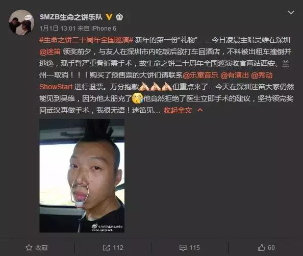 值得一提的是,主唱吴维之前被一辆出租车撞倒,经过一番检查,诊断为手臂严重骨折,需要手术治疗。