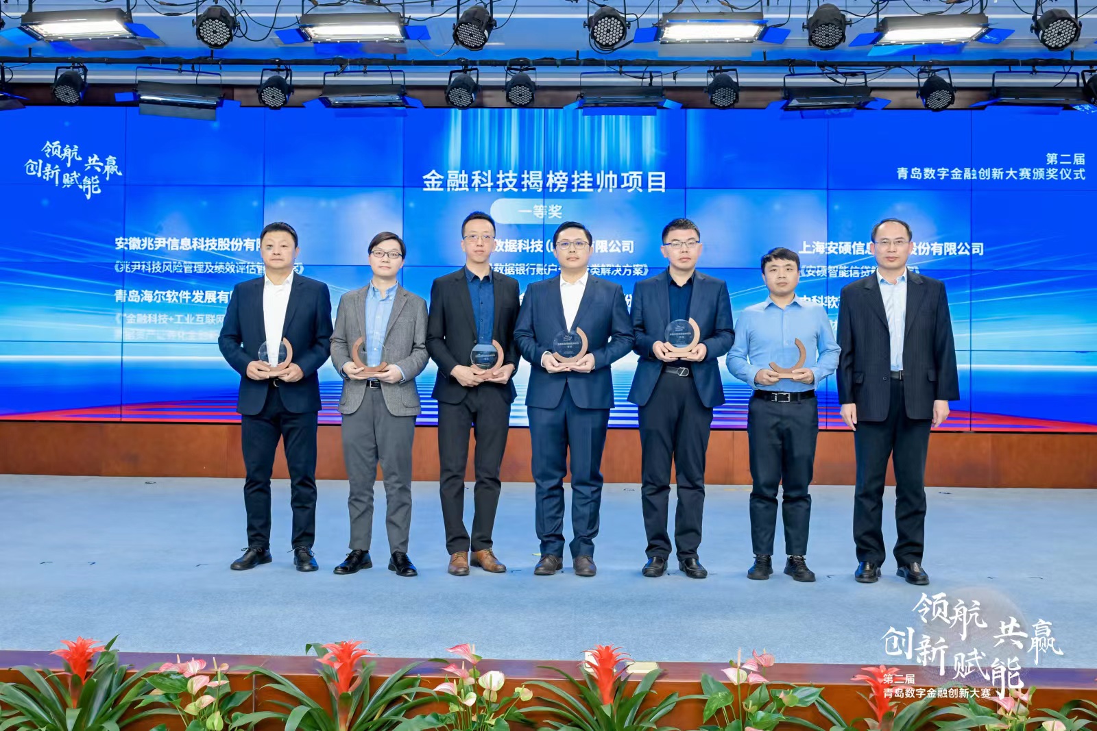 “金融科技揭榜挂帅项目”今年设置六大赛道,各赛道累计征集解决方案20套,经路演答辩后,各赛道最终评选出一等奖、二等奖、三等奖各1名。安徽兆尹信息科技股份有限公司获得光大理财有限责任公司“财富管理”榜单一等奖、建投数据科技(山东)有限公司获得青岛银行“智能风控”榜单一等奖、上海安硕信息技术股份有限公司获得青岛农商银行“智能信贷”榜单一等奖、青岛海尔软件发展有限公司获得交通银行青岛分行“工业互联网”榜单一等奖、兴业数字金融服务(上海)股份有限公司获得兴业银行青岛分行“绿色金融”榜单一等奖、中科软科技股份有限公司获得中路财产保险股份有限公司“精准营销”榜单一等奖。