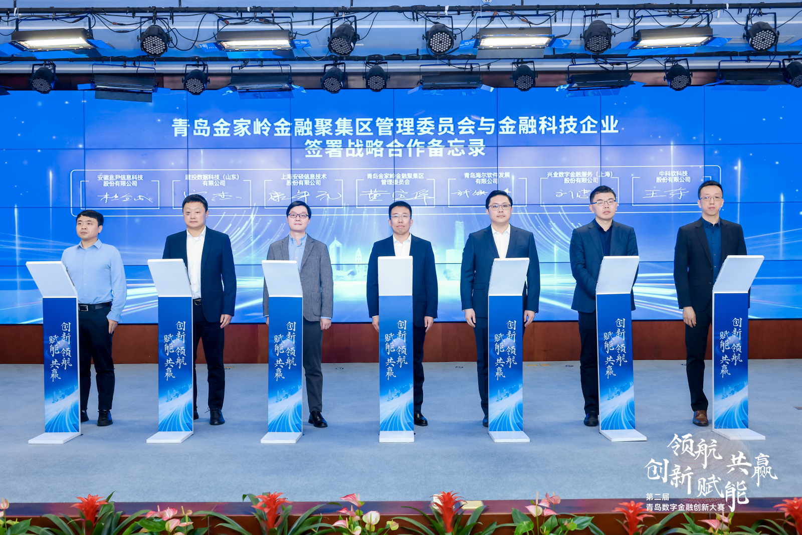 在签约环节,青岛金家岭金融聚集区管理委员会副主任董宝华代表金家岭金融聚集区与安徽兆尹信息科技股份有限公司等六家金融科技企业签署战略合作备忘录,共同约定将在数字金融领域强化政企合作。