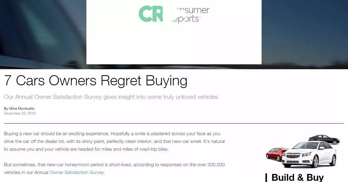 日前,美国权威杂志《消费者报告》就公布了一份在对30万辆车型的评测下而作出的,2016年消费者满意度调查报告。