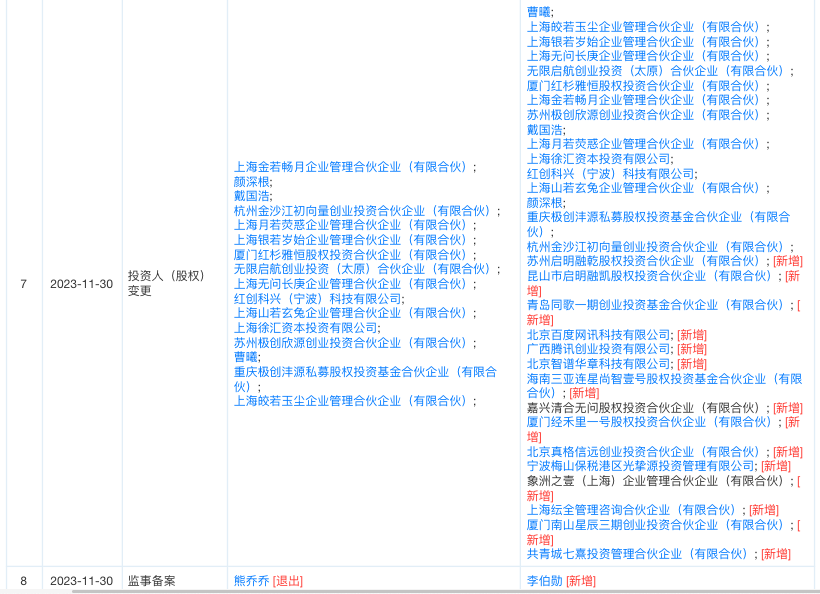 短短两个多月后,无问芯穹于11月30日进行了第二次投资人(股权)变更,股东新增腾讯、百度、经纬、真格、启明创投、智谱AI等,投资阵容更加强大。