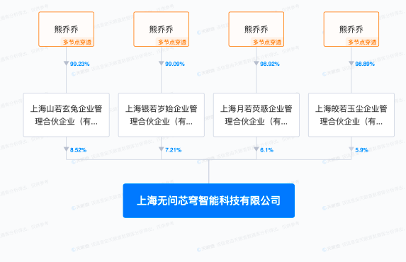 值得一提的是,熊乔乔也是无问芯穹的最大受益所有人,最终受益股份约27.487%。
