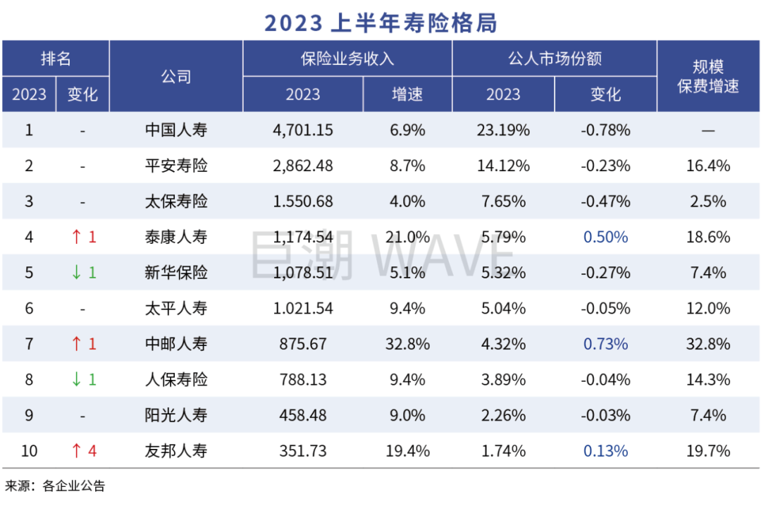 今年上半年,凭借较早布局养老产业,泰康保险业务收入增速超20%,排名继续力压新华位居寿险第四,排在前面的只有中国人寿、平安寿险和太保寿险。