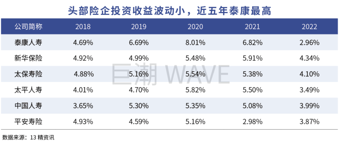 要想“布局早,熬得住”,必须依靠保险主业的反哺。泰康在业内以高投资收益率闻名,近五年平均收益率排在头部险企第一名。