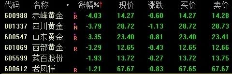 但随着金价波动,12月5日,上述黄金采选企业股价跌幅超3%,老凤祥和菜百股份的股价也下跌1%以上。
