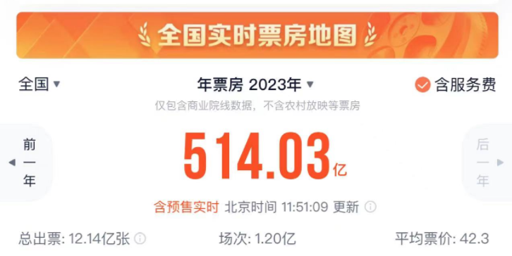 灯塔专业版显示,截至12月5日中午,2023年中国电影市场票房累积突破514亿元,自2020年来首次重返500亿元高位。
