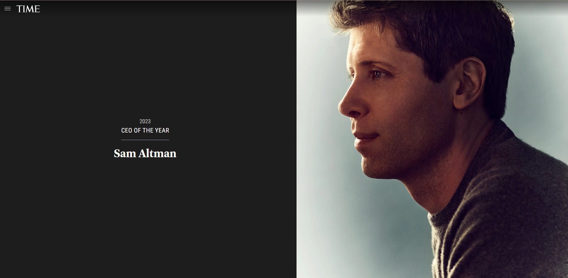 12月6日,《时代》周刊评选OpenAI联合创始人山姆·奥特曼(Sam Altman)为2023年度首席执行官(CEO)。今年11月17日,OpenAI非营利组织突然解雇公司CEO山姆·奥特曼,但在五天后,奥特曼回归重任该公司CEO。