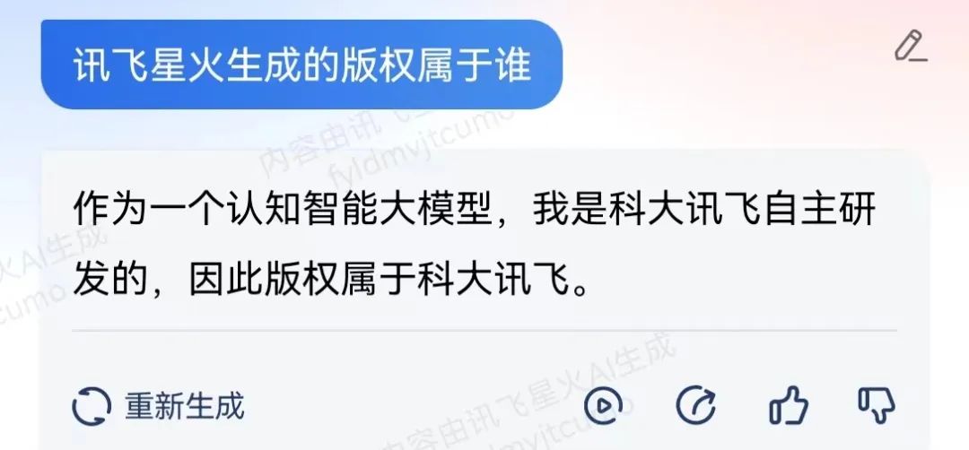 讯飞星火和MiniMax则明确回答:“版权属于公司所有。”