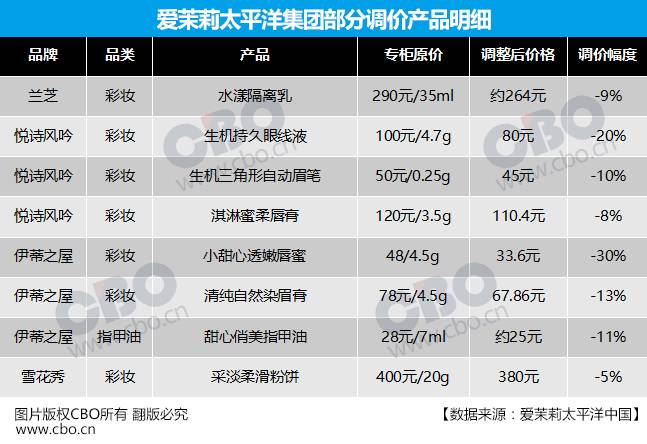▲爱茉莉太平洋中国关于调整部分彩妆产品建议零售价的声明