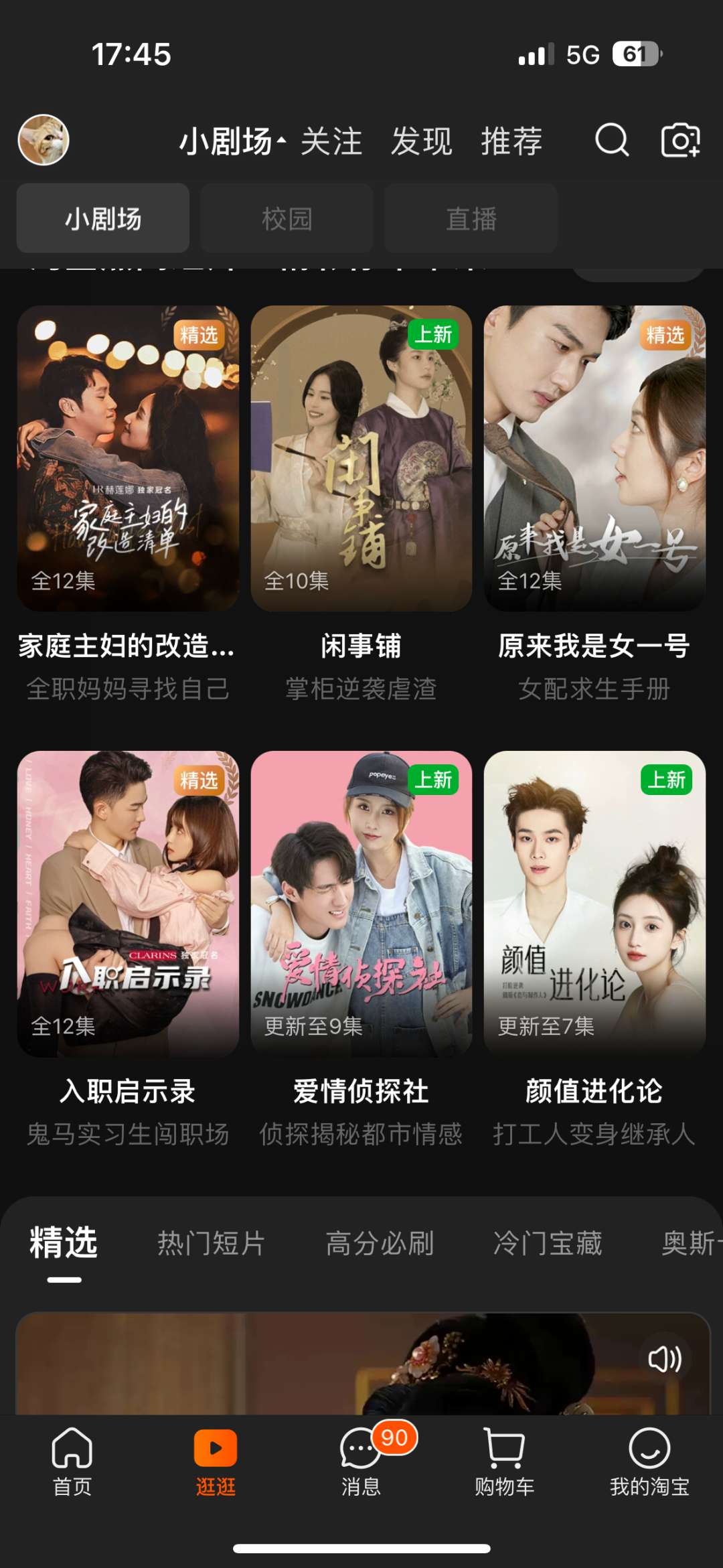 「内容化」探索最为纵深的淘天,在大力扶持的淘宝「逛逛」板块中,「小剧场」作为二级页面,吸纳了众多淘宝采购及投拍的微短剧内容,部分还植入了购买链接;拼多多和京东的投入相对低调。