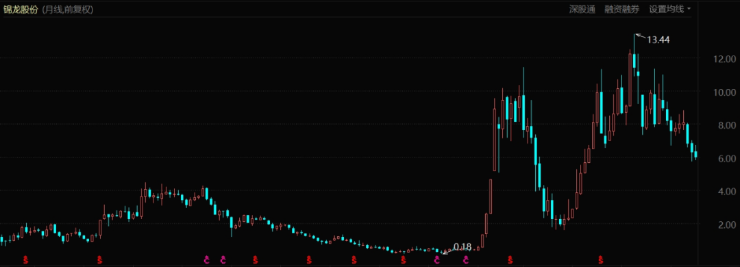 到2001年7月,金泰发展更名为锦龙股份,似乎已经彻底摆脱了从前的烂摊子。但锦龙股份的股价表现却并未脱胎换骨,到2005年时甚至创下了历史性的低价(0.18元/股)。
