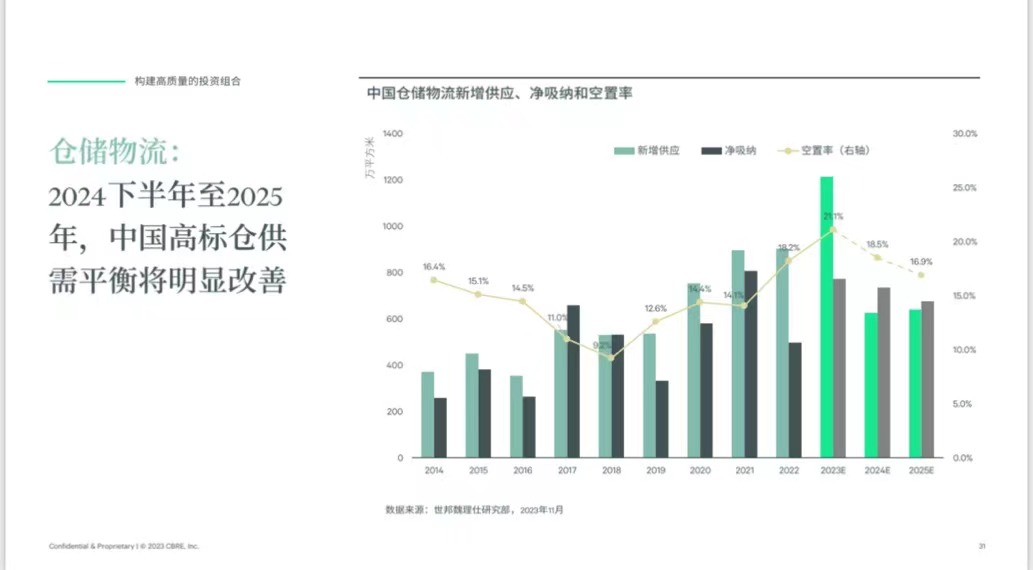 谢晨向界面新闻解释,其实从2018年之后,物流地产就已经成为十分火热的赛道,大量资金参与进来,在形成投资后就会带来新增供给。过去几年由于疫情影响,供给延后,才导致今年来到了一个短期的供应高峰。