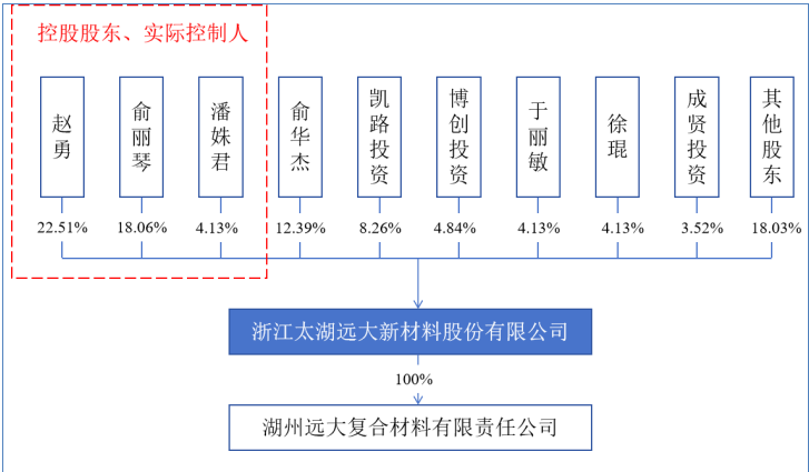 截至招股书签署日,赵勇、俞丽琴、潘姝君三人分别持有太湖远大22.51%、18.06%、4.13%股权,为太湖远大实际控制人。