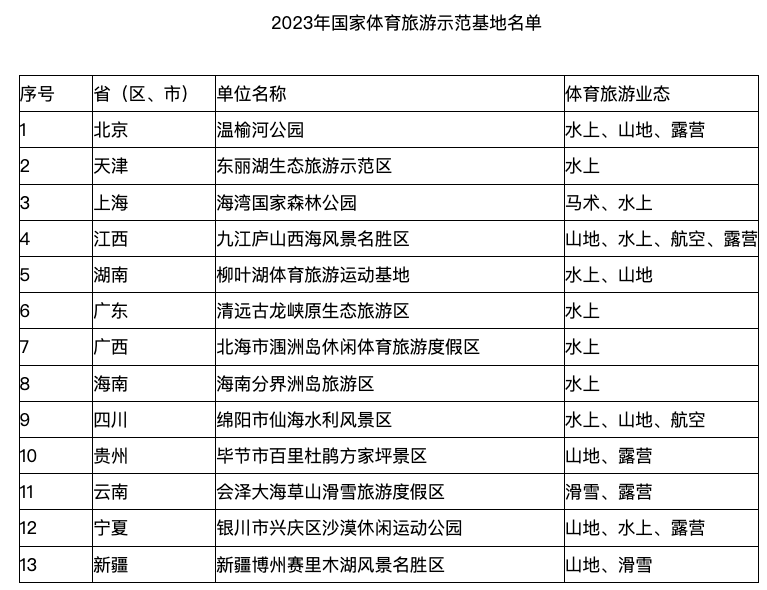 体育总局官网12月8日消息,体育总局、文化和旅游部认定北京温榆河公园等13家单位为国家体育旅游示范基地。