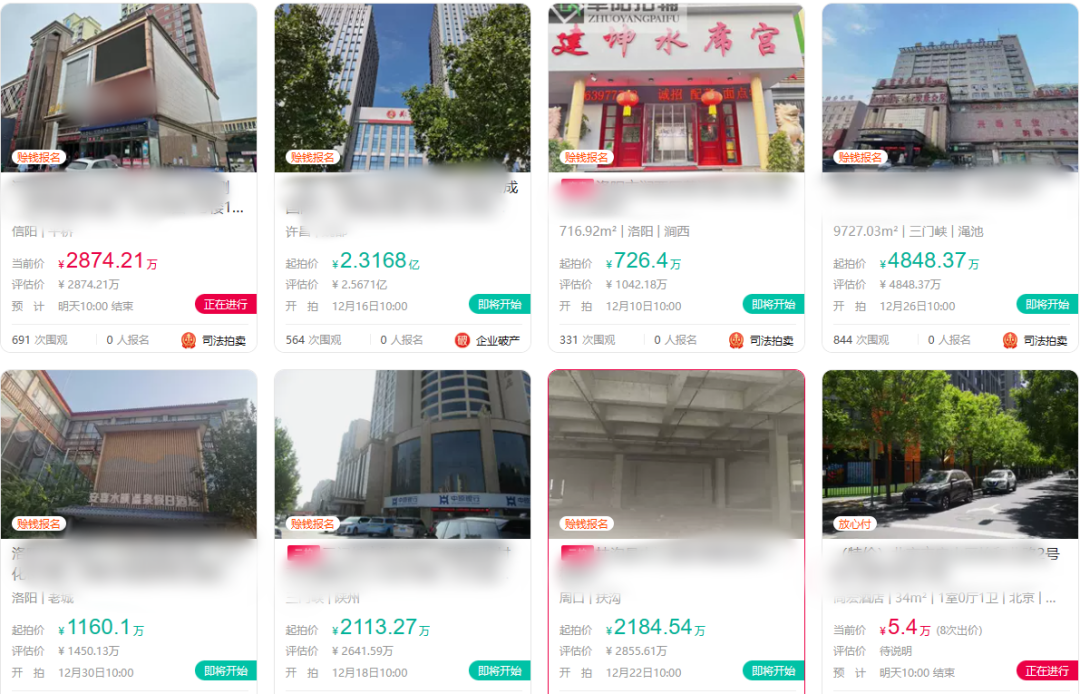这里的酒店资产起拍价不等,低者数十万元,高者可达上亿元。