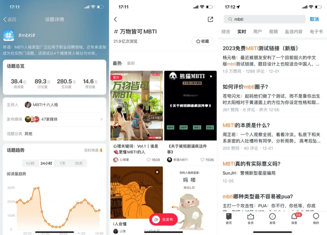 在国内的社交网络上,MBTI也越发火爆。据平台统计,微博#mbti#话题总浏览量已超过38亿,小红书上#万物皆可MBTI#话题有近22亿次浏览,豆瓣、知乎上的研究爱好者也“前仆后继”。