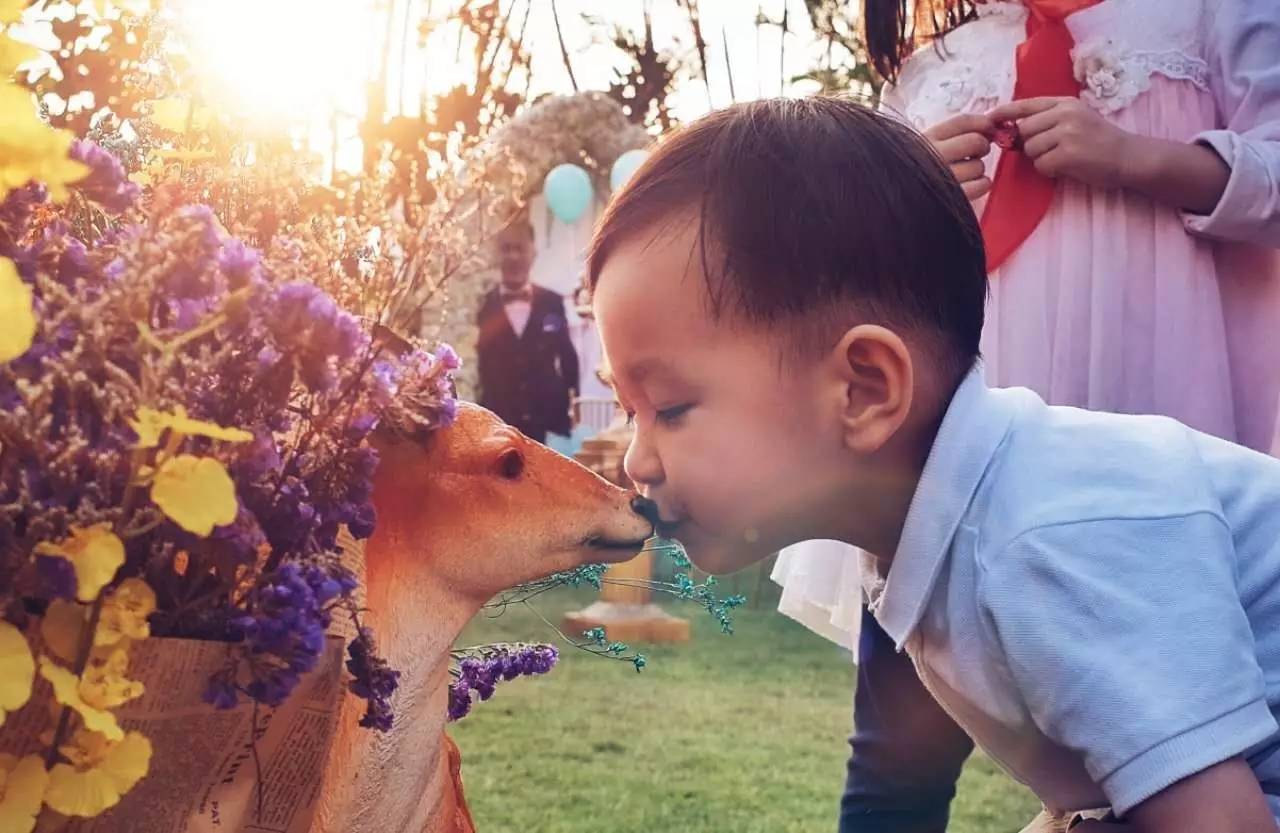 ▲摄于一场草地婚礼,抓拍到小朋友和小鹿亲亲的画面,超有爱