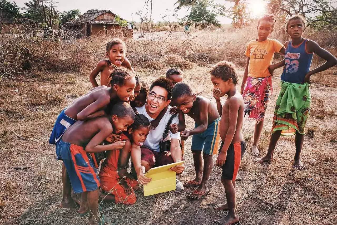 ▲摄于马达加斯加,和一群当地孩子玩在一起