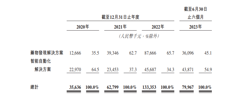 从收入来看,晶泰科技业务主要分为药物发现解决方案和智能自动化解决方案两部分。