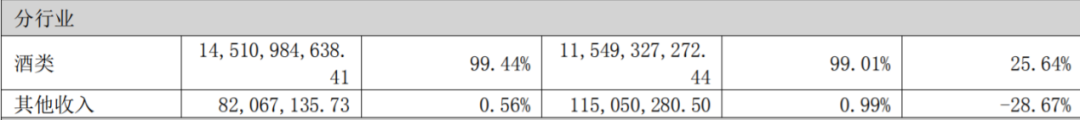 但事实上,从泸州老窖2023年上半年披露的数据来看,酒类仍是公司绝对的营收来源,营收约145亿元,而“其他收入”一项仅占比0.56%,为8206.71万元。