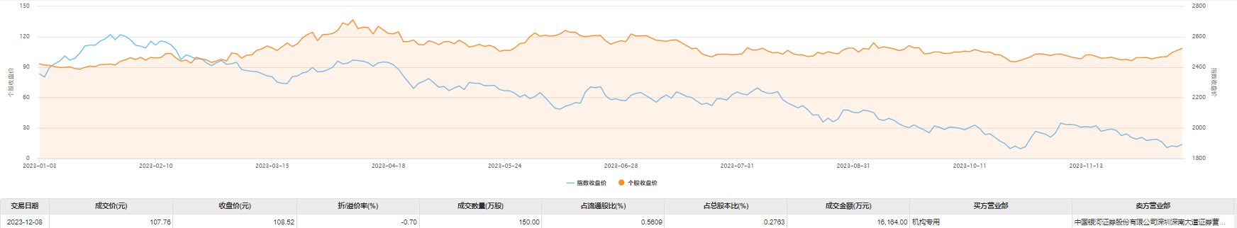 12月8日,华大九天今日大宗交易成交150万股,成交额1.62亿元,占当日总成交额的10.38%,成交价107.76元,较市场收盘价折价0.7%。