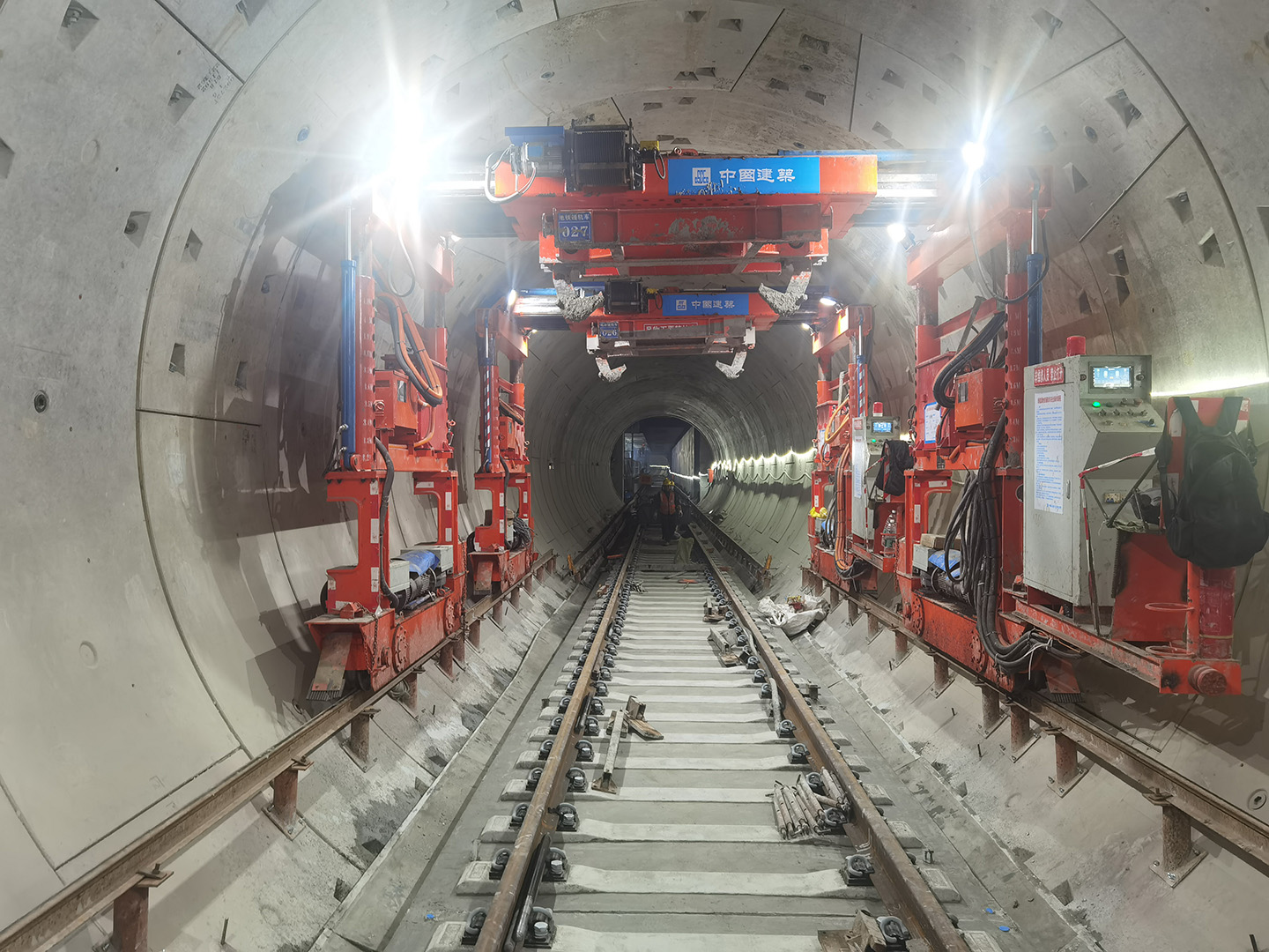 在土建施工阶段,建设团队就结合土建盾构施工安排,提前对铺轨基地设置、铺轨时序安排及铺轨关键线路进行梳理统筹;同时优化施工组织,提前做好铺轨人机料进场准备、强化资源保障,确保区间洞通后铺轨施工即进场。