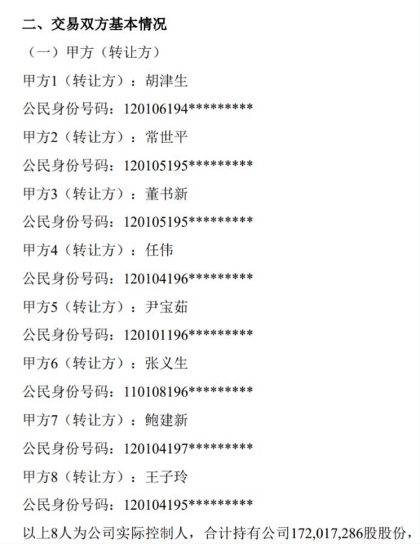 如果8位实控人顺利完成标的股权的转让,则最高可以套现超10亿元。不过,公告提示,本次达成的《股份转让意向书》仅为意向性框架协议,最终的股份转让价格和支付方式将在后续双方签订的正式文件中约定。
