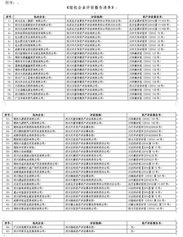 公告显示,这样的估价并非随意的来,估价是根据“银信资产评估有限公司出具的银信资评报(2016)川第12002号《资产评估报告书》,以及有关评估机构对四川汉龙(集团 )有限公司等43户企业分户出具的资产评估报告书得来。”