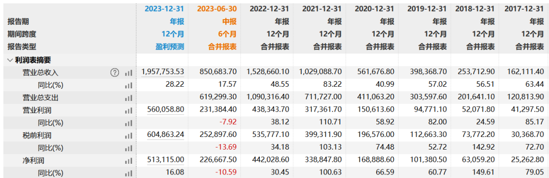 从财务数据来看,药明生物确实业绩增速放缓。2022年,公司收入152.69亿元,同比增长48.4%;毛利67.24亿元,同比增长39.2%。2023上半年,药明生物收入同比增加17.8%至84.9亿元,毛利同比增加4.3%至35.6亿元。2017年-2022年,其归母净利润增速则分别为79.05%、149.61%、60.77%、66.59%、100.63%、30.45%,2023年上半年同比下降10.59%。