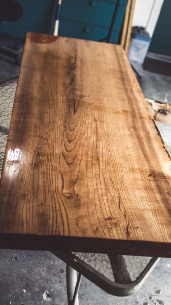 我找到一家木材厂,买了木板。我想要一个坚固的桌面。