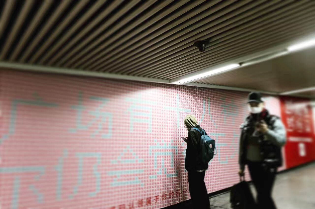 这句话从2016年12月31日起,出现在上海人民广场地铁站的通道内。它由1万个可以撕掉的磁铁拼接而成,长达12米。每个磁铁上印着一个二维码,下面还会有一个注释——这个城市中的孤独有1万中,扫描磁贴寻找和你相同的那一个。