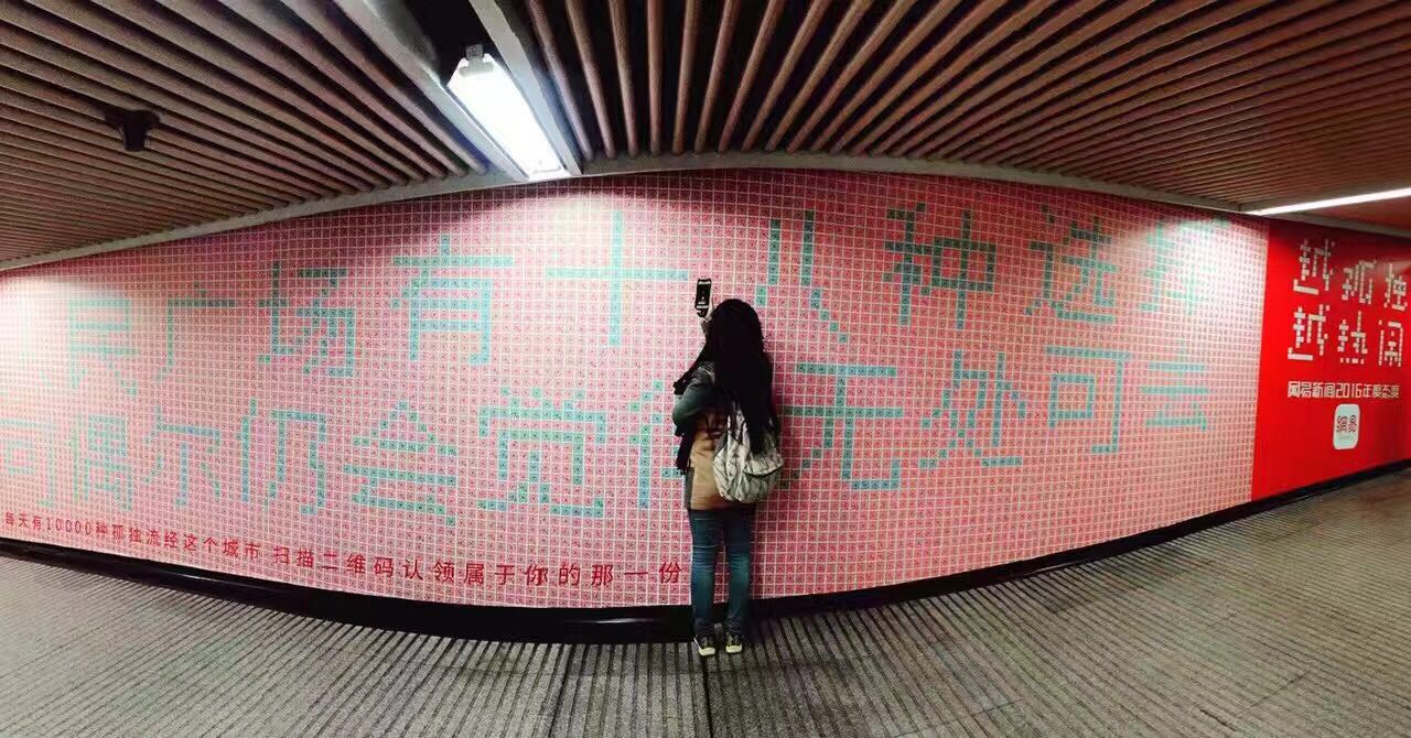 如果按照广告营销思路“内容形式+投放渠道”来拆解,这1万个二维码带来了视觉冲击与话题性,而地铁通道的投放渠道又是城市里人流量最大的地方之一——更何况那是人民广场——这两个因素让1万个二维码没有被淹没在每日的大量广告中。