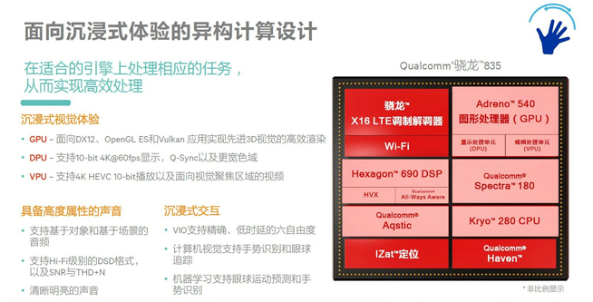 当然为了让产品拥有更好的沉浸式体验(VR/AR)它还支持4K Ultra HD premium(HDR10)视频、10位广色域显示、基于对象和基于场景的3D音频以及高通自主研发的传感器融合技术的六自由度(6DoF)VR/AR运动追踪。当然少不了的就是支持Google Daydream平台。