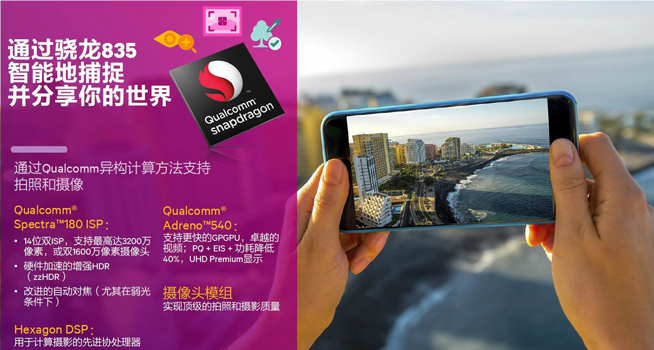 其支持混合自动对焦(激光/对比/结构光/双相位检测自动对焦)以及光学变焦。配合上Hexagon 682 DSP协处理器,能让骁龙835拥有更大的拍照性能以及流畅的拍照体验。