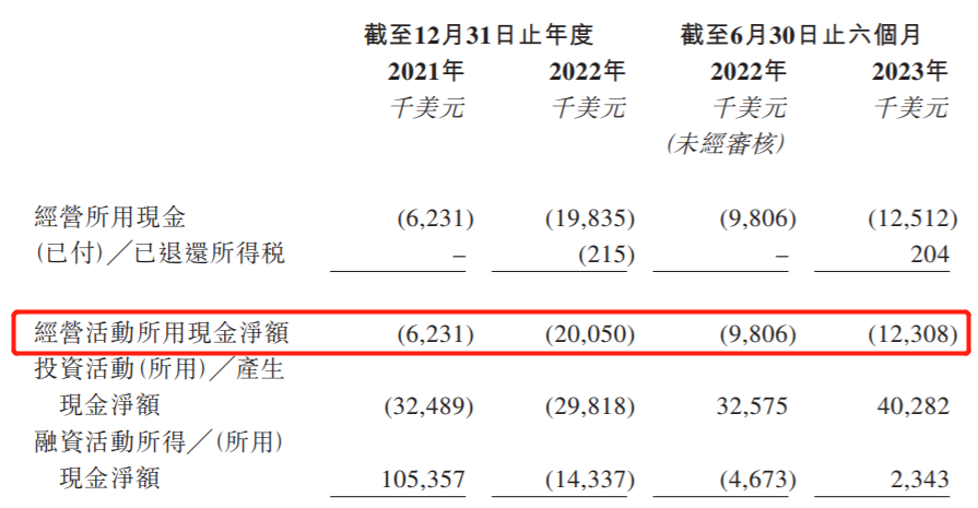 报告期内,拨康视云经营活动所产生的现金净额分别为-623.1万美元、-2005万美元和-1230.8万美元,现金持续净流出。