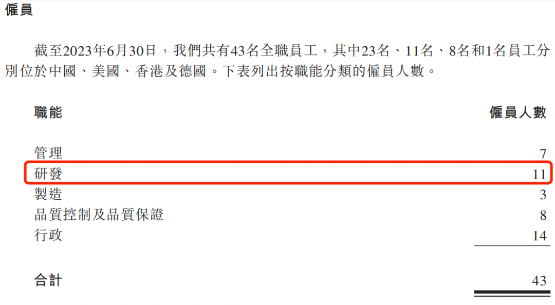 然而,公司的人员规模较小。招股书显示,拨康视云仅有43名全职员工,其中11名为研发人员,占员工总人数的25.58%。令人怀疑的是,如此一家“小公司”却有14名行政,占员工总人数的32.56%,行政人员数量甚至超出了研发人员。