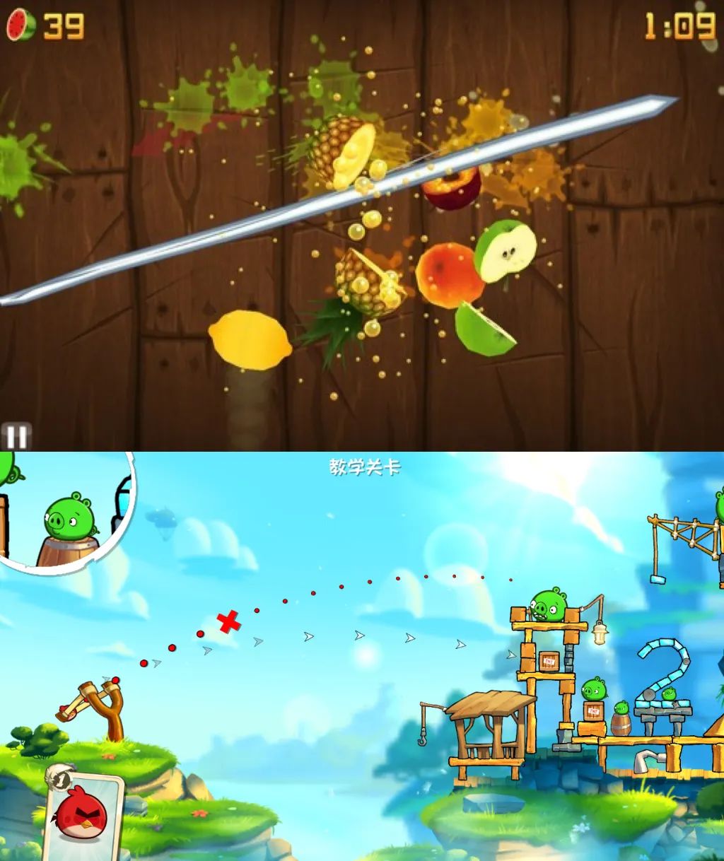 彼时的第一批经典手游应该很难被遗忘:《神庙逃亡》《水果忍者》《愤怒的小鸟》……它们都是从海外输入,玩法简洁,适配新兴的触屏智能机特性。